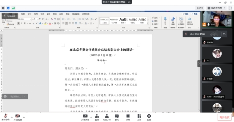 2022年4月13日,电气本科2018级第二党支部通过腾讯会议集体学习了《习近平:在北京冬奥会冬残奥会总结表彰大会上的讲话》。