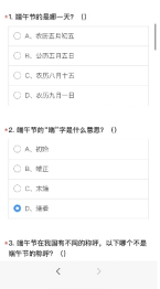 5月31日-6月2日,端午传统节日知识有奖问答活动在线上持续开展,活动以端午节相关传统文化常识作为题目,参与活动的教职工在线上扫码进行答题,在答题中学习端午节的相关知识,感受传统习俗的魅力,最后,以得分高低发放奖品。通过答题,老师们了解到端午节有五月节、菖蒲节、沐兰节等多种叫法,重温了“路漫漫其修远兮,吾将上下而求索”等诗人屈原的作品名句,学习了包粽子、赛龙舟、佩香囊等传统习俗的由来和意义。学院广大教职工踊跃参与,最后评选出一等奖7人,二等奖15人,三等奖45人。