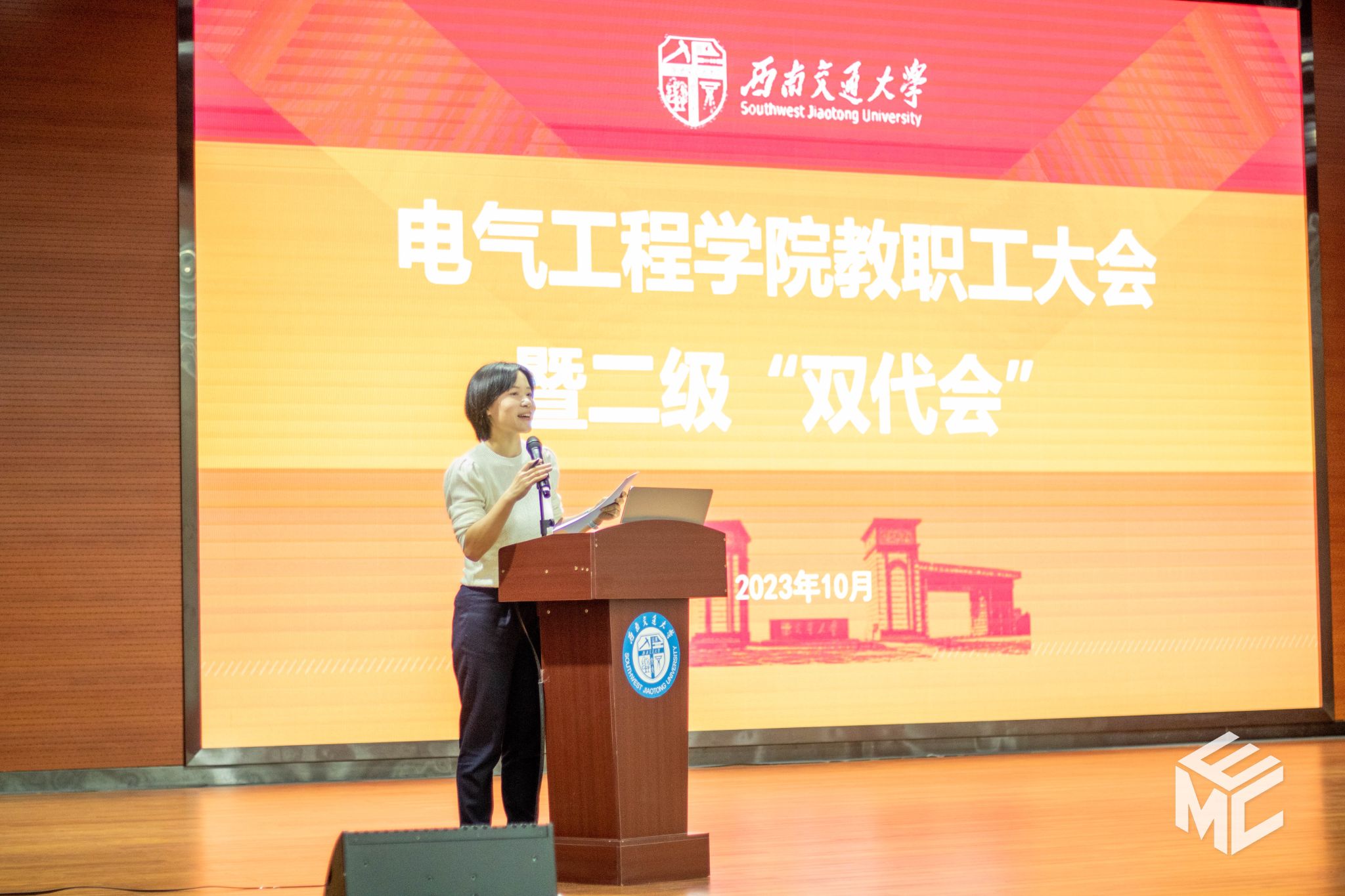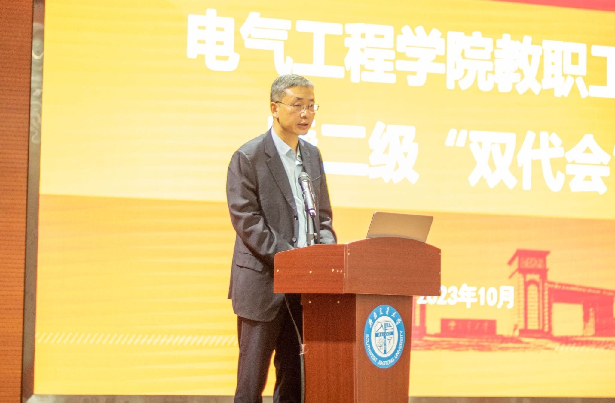 2023年10月10日下午,禁忌书屋 2023年“双代会”在犀浦校区一食堂三楼顺利召开。院长何正友,党委书记王斌,党委副书记谢力,党委副书记、工会主席王轶,副院长何晓琼、解绍锋、陈民武、胡海涛、刘志刚参加会议。因院情院务公开需要,本次“双代会”扩大至全院教职工范围,学院“双大会”代表与全体教职工参加会议。会议由党委王斌书记主持。