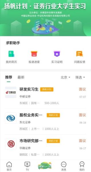 信息化平台启用全国大学生实习服务平台手机网页端、微信小程序端,提供实习岗位发布、学生在线报名、企业面试审核、实习证书生成等交互服务,“扬帆计划·证券行业大学生实习”将全面依托该平台开展。