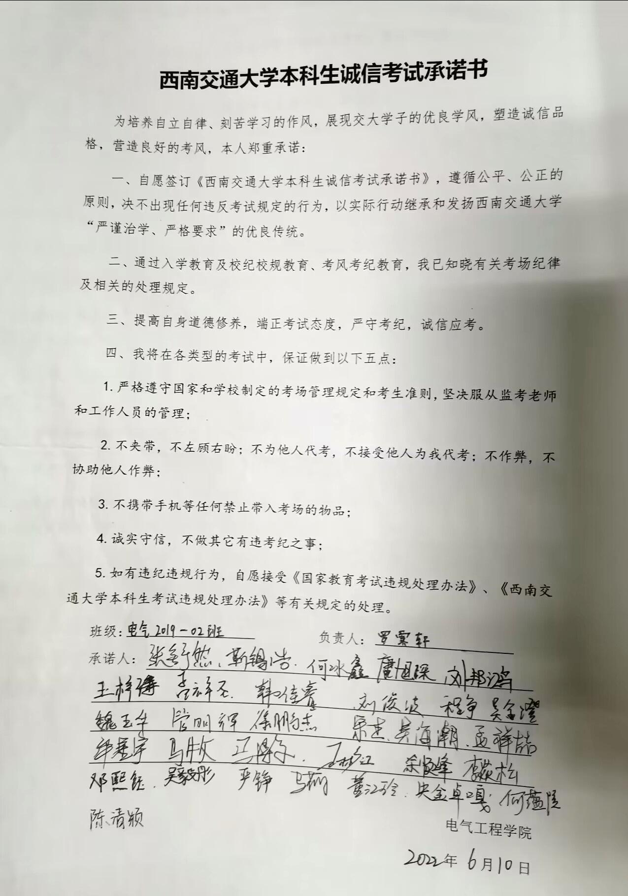 临近期末,为强调考试纪律,杜绝考试作弊行为,端正学生考试态度,形成良好的诚信考试氛围,6月10日,电气本科2019级在X2216、X2218教室召开了以“做诚信学生,建诚信考场”为主题的年级大会。本科2019级全体同学及辅导员参与会议。辅导员樊芝菱、詹睿主持会议。
