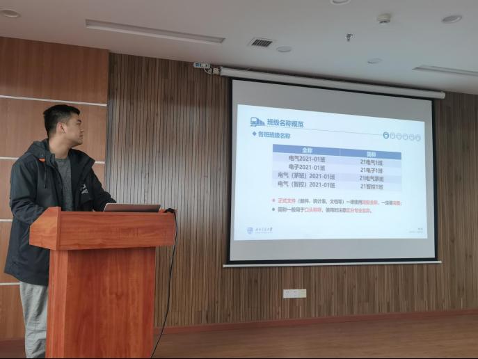 最后一部分由王晋瑄发言,对10月17日下午的精英班级答辩赛进行讲解,号召2021级班长、团支书向优秀学长学习,了解精英班级评选标准,以身作则,发挥先锋作用,带领其他同学向下一届精英班级冲刺。