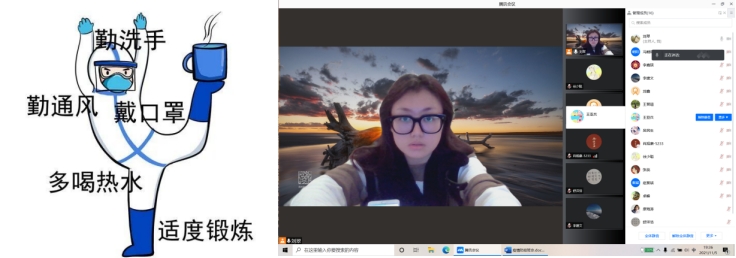 随着秋冬季节的到来,新冠肺炎疫情防控压力陡增,进入11月,成都市内再度出现了本土疫情,防控工作再次敲响了警钟。为引导同学们正确认识疫情,了解疫情,做好防控疫情的准备,115日晚1930,禁忌书屋 硕士202110班同学以云见面的方式开展了“疫情防控,战‘疫’有我”主题班会,提醒大家严格重视本次疫情,保护自身的安全。
