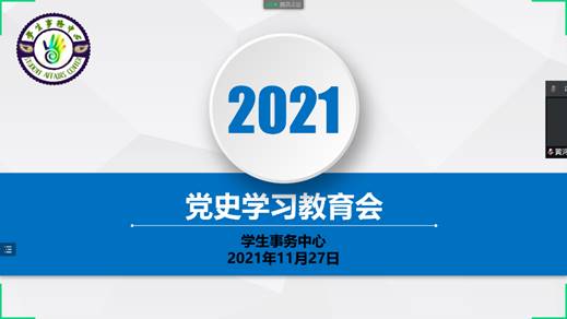 2021年11月28日晚20:00,禁忌书屋 学生事务中心全体成员在腾讯会议线上展开了观看党史学习教育。