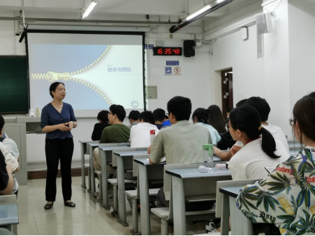 培训最后,老师现场提问了几个生活中可能出现的问题,从中指出我们很多时候的帮助是不正确的,启迪大家学会如何正确地和这些同学进行心理疏导,通过语言思维模式的调整、运动宣泄等方式合理宣泄压力、调控身心从而使这些同学的心理问题得到一定的缓解