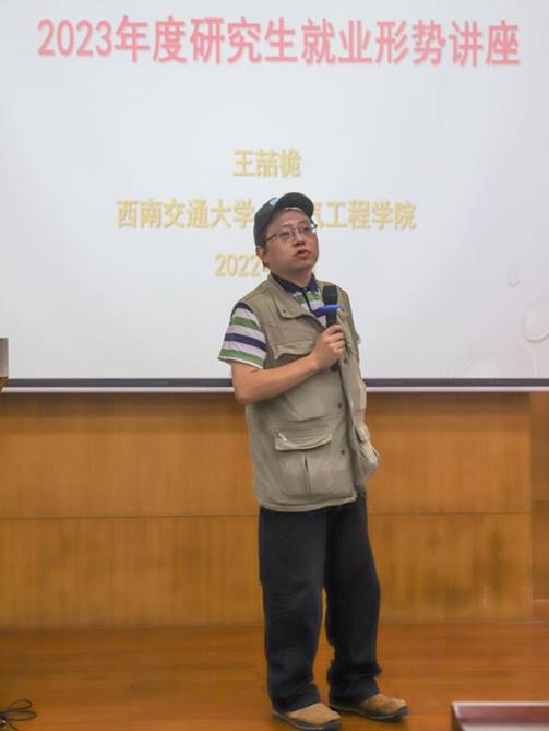 接着,王喆桅老师对学院近年就业情况进行了分析,向同学们重点介绍了近几年研究生集中去往的行业、各用人单位的情况,鼓励同学们打开求职视野。也对同学们在求职过程中了解企业情况、做好自我认知等方面提出了建议,希望大家避免盲从,放稳心态,积极做好适合自己的规划,并提醒同学们谨慎签约、诚信履约。
