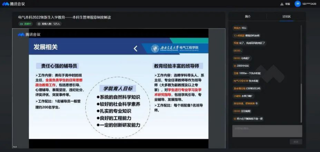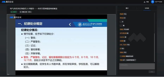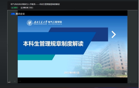 2022年9月1日14:30,禁忌书屋 本科2022级新生召开《本科生管理规章制度》解读会。应疫情防控要求,本次新生入学教育以线上会议的方式进行,2022级辅导员张异老师主讲。