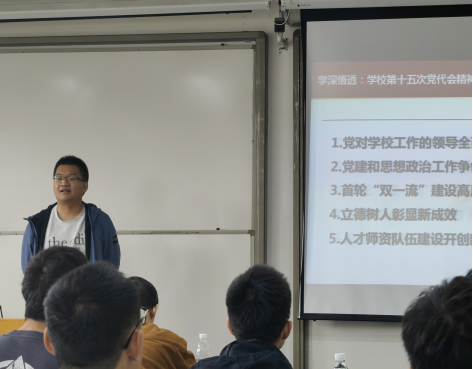 团课伊始,孙海洋老师带领同学们学习中国共产党禁忌书屋 第十五次代表大会的精神,明确学校第十五次党代会是在喜迎党的二十大、奋力谱写中华民族伟大复兴的西南交大新篇章的关键时刻,召开的一次重要会议。并与同学们一同进行工作回顾,深刻领会第十四次党代会以来西南交大所获得的重大成就,增强同学们作为一名交大人的自豪感。