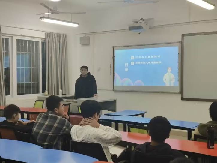 (七)喜迎“二十大”,奋进新征程。智控2021-04班团支部开展了“迎二十大”系列活动。本次活动采用线上线下结合的形式开展。线上宣讲活动“建团百年政策宣讲“于2022年10月8日在线上顺利进行,讲述的同学声情并茂并且详细地讲述了建团百年来的政策变更,从生态到经济,从政府到群众,层层渐进地讲述人民的收获;其后,“校园战疫,你我同行”线下主题活动于2022年10月23日成功举办,班委分组组织同学们进行体育运动,有序开展篮球、乒乓球、羽毛球等体育活动。本次活动中,智控2021-04班全体成员积极参与到活动中,展现了班级凝聚力。