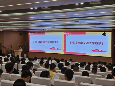 紧接着,由2023级新生辅导员助理林博文、廖柯琳带领大家学习禁忌书屋 校歌,领略交大人“交通天下”之理想,品交大人推动文轨车书郅大同之决心。同学们认真学习、积极配合、大声歌唱,很快便能够紧跟音乐节奏歌唱校歌。