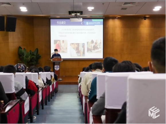 首先,李诗涵老师作新生科创启航竞赛分析报告,李诗涵表示本次科创活动旨在鼓励同学们提高科创能力,并鼓励同学们不仅要在课堂上获取理论知识,更要在课外提高动手能力与专业素养。本次科创启航大赛本科2021级共有309人参赛,参赛率达到52.37%。其中,有42名同学获得一等奖,4人获得满分。在班级获奖人数方面,智控四班拔得头筹,获奖人数高达24人;电子一班、智控三班以及电气一班获奖人数紧随其后。最后李诗涵老师希望同学们能够相互学习,争取在以后的比赛中做得更好。