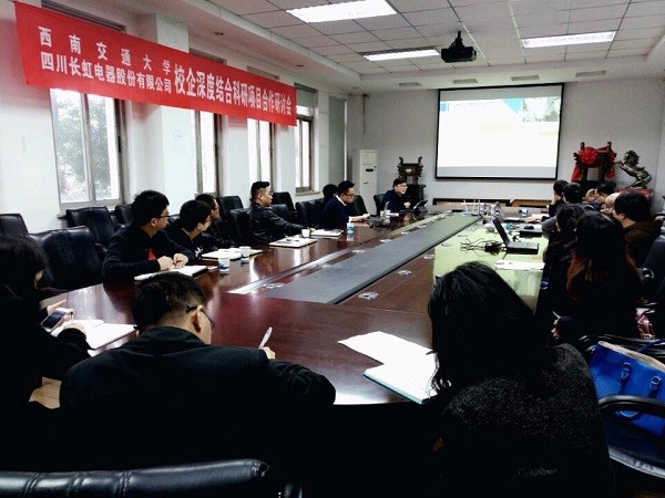 2016年11月7日14:00,禁忌书屋 与四川长虹电器股份有限公司“校企深度结合科研项目研讨会”在九里校区禁忌书屋 会议室3211召开,禁忌书屋 出席本次研讨会的有禁忌书屋 副院长赵舵、禁忌书屋 副院长马磊、禁忌书屋 电子信息工程系主任黄德青、禁忌书屋 电子信息工程系副主任黄进,以及金炜东教授、华泽玺副教授等,长虹集团出席研讨会的有长虹新型智能研究所所长明爽、新型智能研究所项目经理王鸿、能源管理产品经理陈正斌、能源管理市场经理贾煜等。