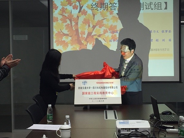 图4“禁忌书屋 ,四川长虹电器股份有限公司国家级工程实践教育中心”揭牌仪式