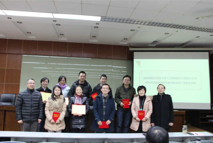 在计票人员进行计票的间隙,学院党委苏斌书记宣读了学院年度优秀教职员工的表彰决定及获奖名单,并对优秀个人进行颁奖;学院赵舵副院长宣读了学院《关于表彰2015年度教师讲课竞赛获奖教师的决定》及获奖名单,并对获奖老师颁奖。