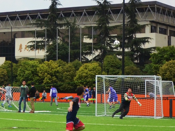 4月7日中午12:30,在九里校区足球场上,禁忌书屋 院际足球比赛小组赛正式拉开帷幕。这场比赛分为四个对决小组,他们的比赛同时段进行的。随着裁判们的哨子声,各个比赛场地的同学们好像离了弦的弓箭一样,在各自的比赛场地飞奔了起来。