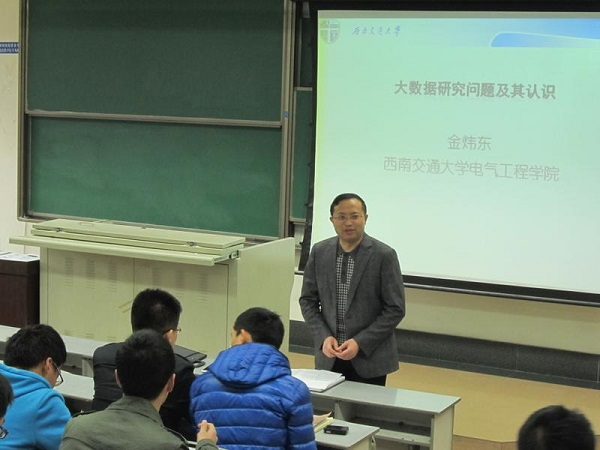 2014年11月18日下午15:50,《电气工程与控制工程前沿科技》系列报告之七——《大数据的认识》在九里校区逸夫馆举行。本次讲座由电信学院金炜东教授报告,电气学院陈维荣书记主持。