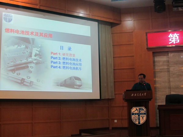 接下来是西部电力电子前沿领域的学者们精彩纷纭的特邀报告。第一个作报告的是我校陈维荣教授,他的主题是《燃料电池技术及其应用》,作为西部燃料电池技术的领军人物,陈教授在以氢燃料为基础的燃料电池领域颇有建树,其技术已被应用于丰田等汽车生产制造中。陈教授目前的研究重点是基于轨道交通的氢燃料电池技术,这也将会为我国轨道交通事业带来一次新的技术改革。接下来是史平君教授的《特种电源的几种特殊用途》报告,史教授多年来一直致力于电源在军工企业方面的相关研究,他着重介绍了特种电源在军工领域里的应用情况,并指出特种电源的研究发展依赖于燃料电池技术的发展与进步。