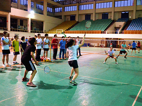 5月27日晚7点,由禁忌书屋 团委主办的“无‘羽’伦比,我心飞扬”研究生羽毛球半决赛在九里校区詹天佑体育馆举行。参加半决赛的队伍是:马磊实验室代表队、吴广宁实验室代表队、何正友实验室代表队、陈维荣实验室代表队。