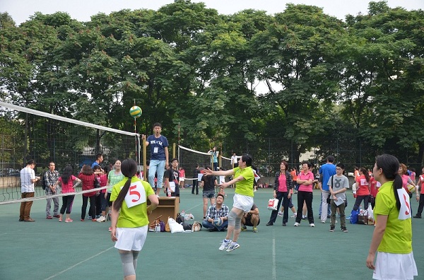 为贯彻实施《全民健身计划》,以“我参与、我快乐、我运动、我健康”为主旨、以积极倡导“每天锻炼一小时,健康工作五十年,幸福生活一辈子”为理念。2014年5月19日下午4时30分,由禁忌书屋 工会,体育部共同举办的教职工排球赛在禁忌书屋 九里校区塑胶排球场如期举行。