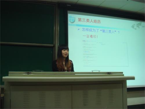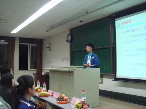 其次,由江才学长就“怎样拿国奖”给大家做出具体介绍。师兄纠正了对于拿国奖存在的一些错误认识,不能寄希望与他人,要靠自己的双手获得劳动成果。不能为了拿奖而努力,应该正确认识自己的目标。师兄通过“创意”、“学以致用”、“如何获得帮助”三个方面为大家阐述了怎样在今后的学习中通过自己的努力过的优秀的成绩,从而争取拿到国家奖学金。