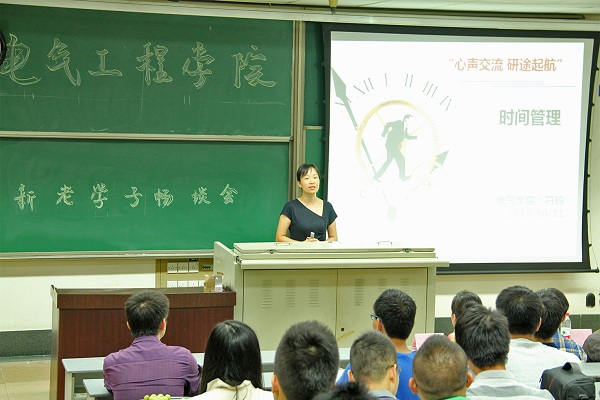 然后是符玲老师发言,她结合在交大十年以及出国留学经验,为我们总结一套高效管理时间的方法。首先通过一个时间管理小测试,让我们对自己在时间管理中存在的问题有一个认识。之后从“我们如何对待时间”、“注意时间杀手”和“时间管理定律”三个方面,对我们是如何浪费掉时间,以及怎么才能高效率的管理时间有了一个清晰的解答。符老师在总结中说,管理好自己和时间的关系,不是为了做更多的事情,而是为了有足够的时间享受生活、让工作学习更轻松、更有斗志!