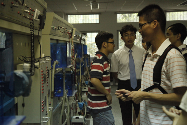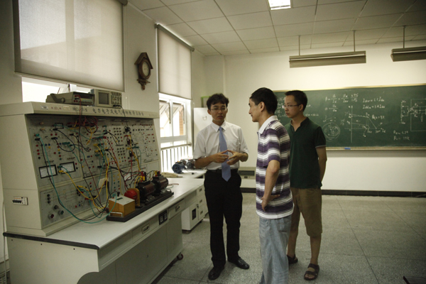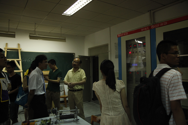 下午两点左右,烈日炎炎,2012级博士生班抵达四川大学,迎面而来的是7名热情的川大电气信息学院研究生(张殷、邱玉涛、刘畅、刘旭娜、郑子萱、郭登辉、马静),在他们的陪同下全体人员到达本次参观交流的第一站——四川大学电气信息工程专业实验中心。本次为我们带队讲解的是四川大学电气信息工程专业实验中心党支部书记冉立老师和实验中心主任肖勇老师。他们热情好客,亲自为我们介绍实验中心的情况。电气信息工程专业中心实验室成立于2001年,其前身为学院电气工程及其自动化、自动化、通信工程三个专业的二十余个独立实验室。专业中心实验室面积约3000m2,功能性实验室14个。实验室现有各种仪器设备1300余台,设备资产达760万元,其中大精设备6套。另建有省级重点实验室2个(四川省电能质量及电磁环境学实验室、四川省信息与自动化技术实验室)。本次交流主要参观了专业实验中心的多功能实验室、电力系统继电保护实验室、电力系统调度自动化实验室、电力系统动态模拟实验室等7个实验室。通过参观和老师的细心讲解,我们对川大电气有了更好的认识,同时对电气工程专业有了更深的理解。