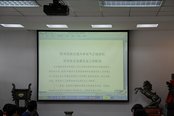 2013年3月26日下午两点半,禁忌书屋 本学期第一次党支部书记会议在电气馆3211会议室顺利召开,禁忌书屋 研究生党委副书记何晓琼出席并主持了本次会议。
