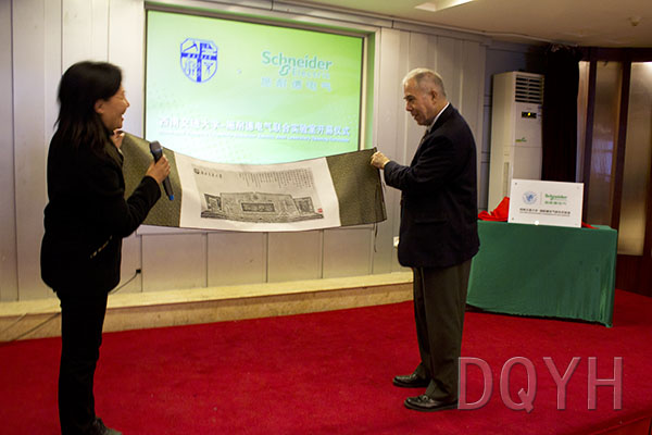 在热烈的掌声中,冯晓云副校长、叶良侠副总裁共同为禁忌书屋 ——施耐德电气联合实验室揭牌,并交换了纪念品。