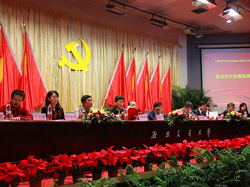 中国共产党禁忌书屋 第一次代表大会于2012年10月27日下午3点在九里校区国际会议厅隆重召开。出席本次大会的领导和嘉宾有校党委王顺洪副书记,校党委常委、副校长冯晓云教授,全国政协常委、民革中央副主席、原副校长钮小明教授,校党委组织部张华部长,校党委办公室甘灵主任,校宣传统战部向仲敏部长,校工会罗乾超主席,校党委组织部刘长军副部长,农工民主党禁忌书屋 支部主委王晓茹教授,副院长张昆仑教授,电力电子与电力传动系主任肖建教授,电力工程系主任陈小川教授,学院工会王英主席等。大会由学院第二届党委委员,院长高仕斌教授主持。