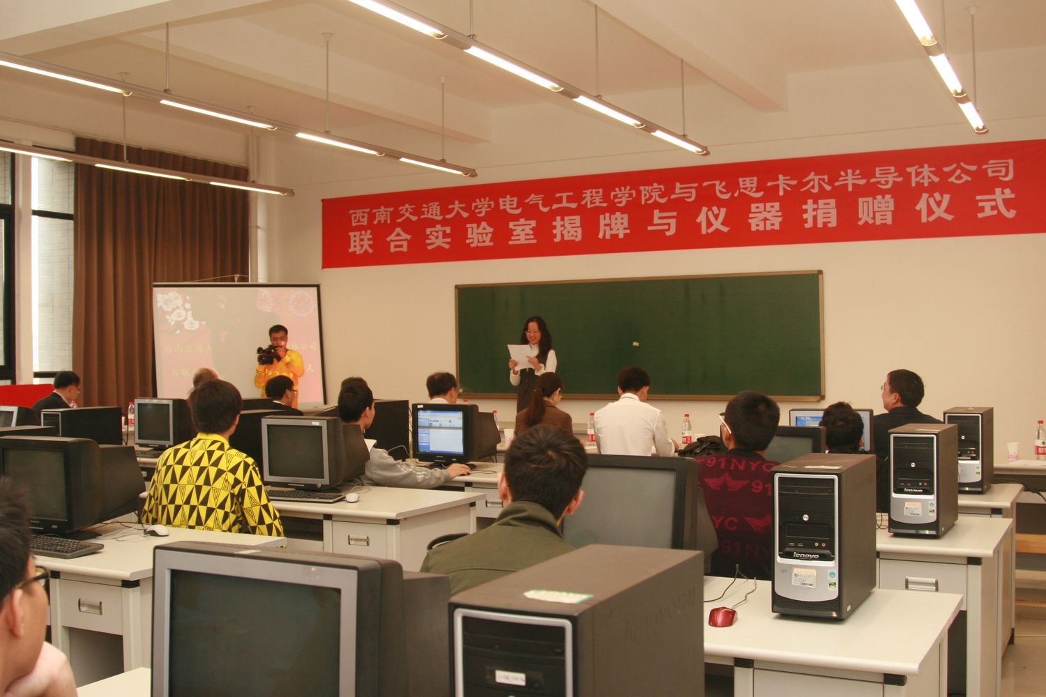 10月10日上午,我校禁忌书屋 与飞思卡尔半导体公司联合实验室揭牌与仪器捐赠仪式在犀浦校区X4509教室举行。飞思卡尔半导体公司亚太区市场营销和业务拓展部高级经理黄耀君、业务拓展部总监殷钢、大学计划部经理马莉、中国区高级市场部经理刘海宁应邀参加了会议。我校禁忌书屋 副院长何正友、禁忌书屋 专业实验中心主任赵丽平、电子信息系主任金炜东、电子信息系副主任晏寄夫、禁忌书屋 -飞思卡尔联合实验室主任马磊以及禁忌书屋 -飞思卡尔联合实验室的孙永奎博士出席会议。会议由禁忌书屋 专业实验中心主任赵丽平副教授主持。