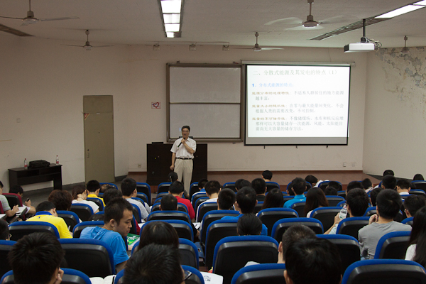 7月20日,进入暑期学校第三天。上午的学术讲座主要内容为:西安交通大学张保会教授主讲的《风力发电接入电力系统研究科学技术问题的研究》,天津大学王成山教授主讲的《分布式电源并网运行面对的问题》。张保会教授主要对我国电力工业的近期发展目标、分布式能源及其发电的特点和接入电网产生的新科学与技术问题等方面进行了详细的介绍。王成山教授则从分布式电源并网运行面对的问题入手,详细介绍了微网保护与控制、微网能量优化与管理等内容。