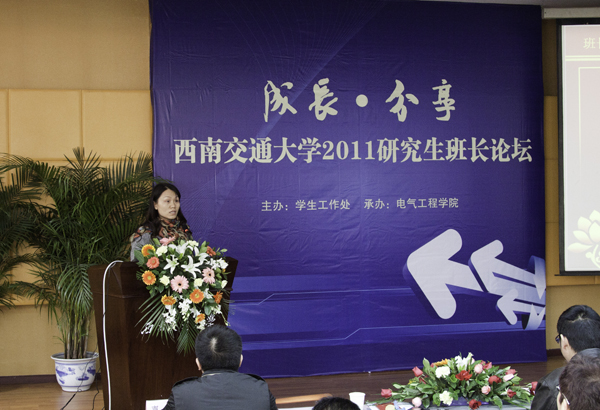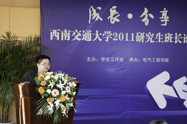 最后,学生工作处胡安辉老师总结了本次论坛,他肯定了各位班长带领班级所取得的成绩。“班长是一个人人生中的第一份事业”,胡老师说道,要充满热情与精力。他还给在座的2011级班长们提了两点建议:一是自信,即相信自己和班级的能力;二是学习,多借鉴优秀班级的经验,多思考班级的发展方式。