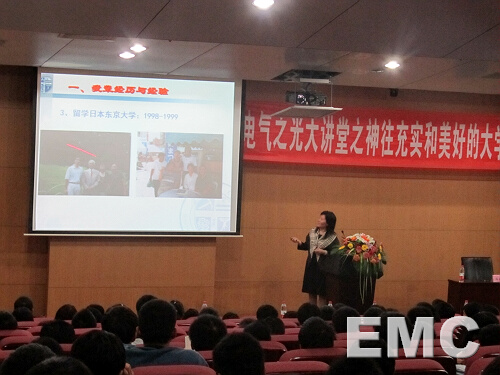 讲座内容主要分成三部分,第一部分是冯晓云教授与同学们分享自己的成长经历与经验。首先就同学们对未来的迷茫感,冯晓云教授以自己刚入大学的落差感为例,提出了通过不断做事,充实自我而消除迷茫的方法。冯教授说她最喜欢“天道酬勤”这四个字。“勤能补拙”,冯晓云教授提醒同学们珍惜现在的美好年华,好好努力。接着针对打算留学的同学,冯晓云教授以自己留学东京大学的经历为参照,点明了初到异国的备受冷落与学习方向的转变,而这些最初的困难都必须自己度过,只有认清自己的学习状况,并全力以赴地努力,才能受到认可,收获成功。同时,冯晓云教授还提议留学期间通过在课余做社会工作来充实自己。她讲到自己曾在大使馆的推荐下,去慰问四名在坂神大地震中倾囊捐助,帮助中国留学生的日本老人。在这一过程里冯晓云教授真诚地去关心四位老人,陪她们聊天、做饭,最后同老人们建立了深厚的情谊。冯教授说:“做事就认真做,不要有太强的目的性,动机单纯,不玩小聪明,应踏实、真诚地对待别人。这是一个人综合素质的体现,是赢得别人尊重的必要条件。”