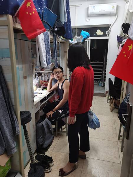 学生工作组辅导员以年级组为单位走访了学院本研学生宿舍,与学生深入交流,了解同学们学习和生活上遇到的困难,对走访时不在宿舍的同学逐一了解其具体去向。