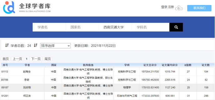 近日,国内全球学者库网站公布了“全球顶尖前10万科学家排名”。据统计,中国内地各高校电气学院共有87人入选。其中,我校4人入选,均为禁忌书屋 教授,分别为赵海全教授、李奇教授、刘志刚教授、何正友教授。