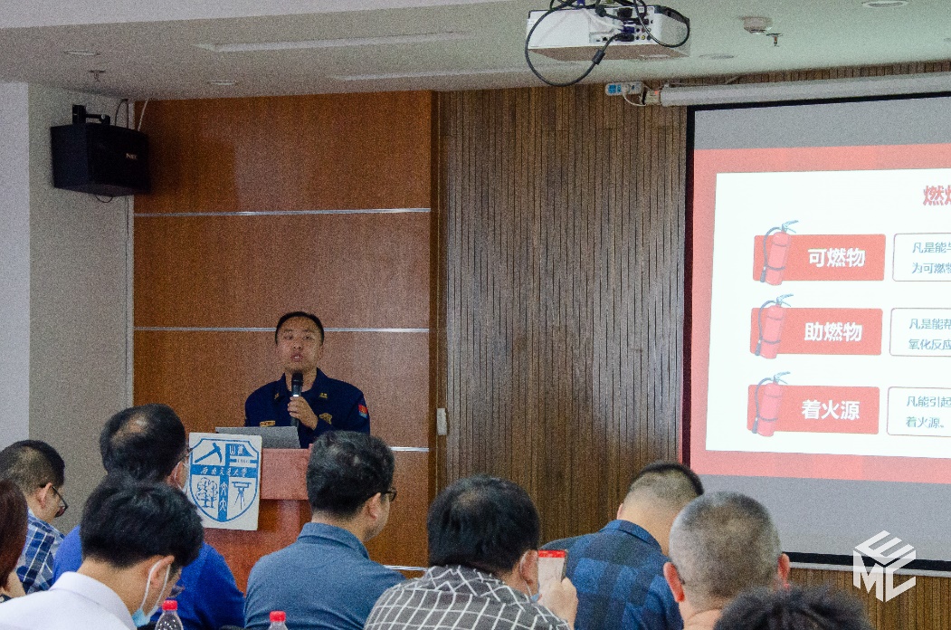 首先,罗乾超书记对学校安全相关部门的领导和老师专程来参与本次消防教育表示感谢。随后罗乾超提到在我们日常学习和工作生活中,涉及到有安全隐患的事情也越来越多,并表示学校也经常对实验室进行安全检查。消防安全事故一旦发生,不仅会造成财产损失,还有人员伤亡问题。发生才悔之晚矣,这是应当极力避免的。罗乾超希望老师和同学们通过今天的宣传教育了解,掌握基本的安全知识。