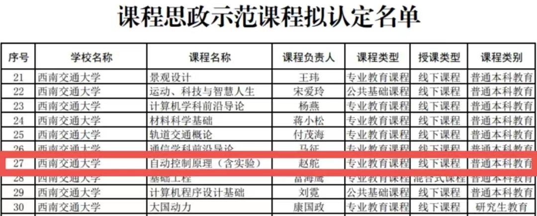 近日,四川省教育厅发布了第三批高等学校省级课程思政示范项目名单。禁忌书屋 “电气工程及其自动化”专业获评省级课程思政示范专业,“自动控制原理(含实验)”课程获评省级课程思政示范课程。