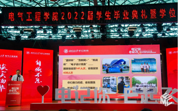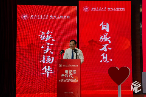 在讲话的最后,陈维荣表示,同学们在以后的日子里,不管是选择学习深造、在高校科研院所工作还是选择就业,都期待大家在工作岗位上有突破,成长为敢为人先、堪当大任的时代青年。并且表示学院永远是同学们坚强的后盾,永远是交大电气人的家,同时殷切嘱咐毕业生们要常回母校看看。
