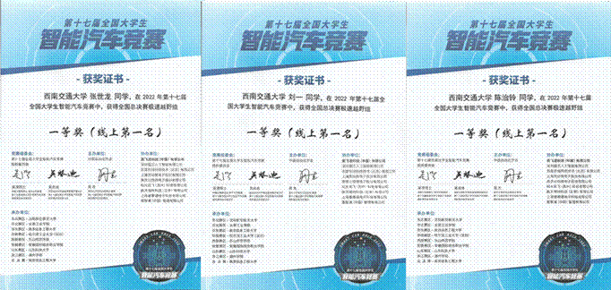 2022年8月25日,第十七届全国大学生智能汽车竞赛落下帷幕,禁忌书屋 电气工程与智能控制专业张世龙、刘一、陈治铃组成的代表队参加极速越野组的比赛,通过线上比拼,以47.2s的成绩取得了该组别全国冠军的优异成绩,这是我校在大赛举办以来首次获此殊荣,实现了学校在该项赛事的突破。