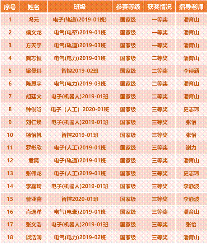 学院学子获中国高校智能机器人创意大赛一等奖3项,蓝桥杯全国软件和信息技术专业人才大赛一等奖3项,全国大学生智能汽车竞赛一等奖1项,全国大学生嵌入式芯片与系统设计竞赛一等奖1项,中国大学生机械工程创新创意大赛物流技术(起重机)创意赛一等奖2项等标志性成绩。