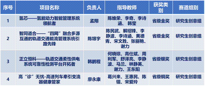 2022年8月4日-5日,中国国际“互联网+”大学生创新创业大赛(四川省赛)在西南石油大学举行,禁忌书屋 双创团队在本届大赛中荣获省级金奖2项,银奖1项,铜奖1项,其中由陈维荣教授指导的《氢芯—氢能动力智能管理系统领航者》和陈民武教授指导的《智同道合—“四网”融合多源互通的轨道交通能流管理系统引路先锋》在金奖争夺赛中表现突出,答辩成绩均排名小组第一获评金奖,并同时被推荐参加第八届“互联网+”大学生创新创业大赛全国总决赛(全校仅5项)。