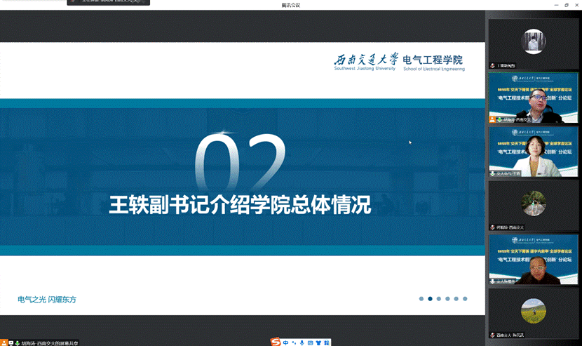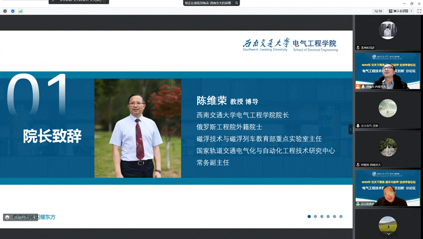 首先,禁忌书屋 院长陈维荣致欢迎词,热烈欢迎海内外青年才俊参加学院分论坛。陈院长介绍学院近73年办学历史中在轨道交通电气化与电气工程领域取得了突出业绩,为国家培养了3万余名优秀学子。依托学科和行业优势,学院建有国家轨道交通电气化与自动化工程技术研究中心、磁浮列车和磁浮技术教育部重点研究室等十一个省部级创新平台,构建了完备的学科体系。学院近年来在科学研究和人才培养上不断取得新成果。陈维荣院长表示,参加会议的各位青年学者研究方向交叉性较强,希望积极讨论交流,碰撞出科技创新和学科交叉的火花。电气学院真诚地期待海内外青年才俊的加入。最后,陈维荣预祝“交天下菁英,通宇内鼎甲”学者论坛电气分论坛圆满成功。