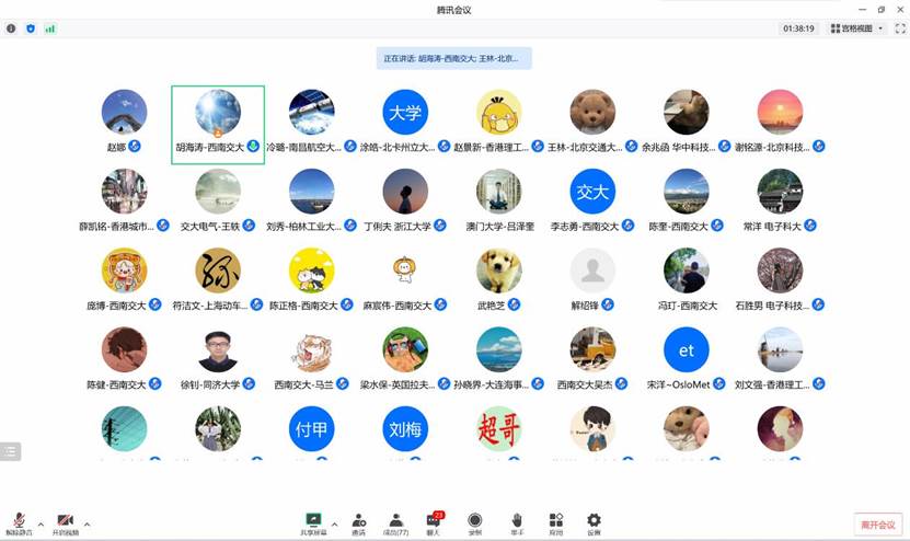 接着,参加论坛的学者进行交流讨论。来自北卡罗莱纳州立大学的涂皓博士介绍自己的学习经历与科研成果,主要研究方向为微电网分布式控制算法等方面;来自香港理工大学的赵景新博士介绍了自己的工作经厉、教育背景、论文发表情况等,他的研究方向为锌离子电池、织物器件及3D打印器件构建与应用。此外,北京交通大学王林博士、南昌航空大学冷璐教授、华中科技大学余兆函博士、香港理工大学叶琳博士、英国拉夫堡大学梁水保博士等也进行了个人情况、研究方向和科研成果分享。