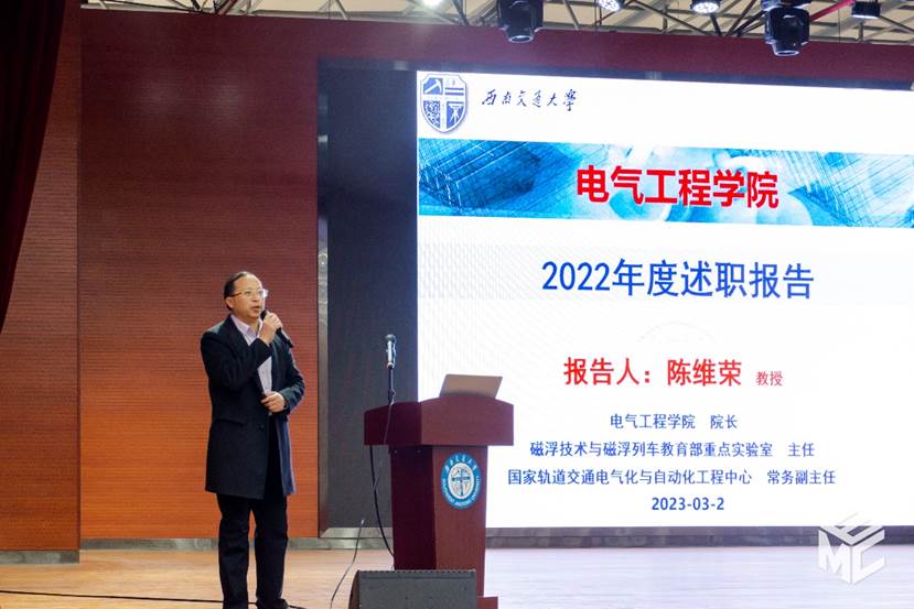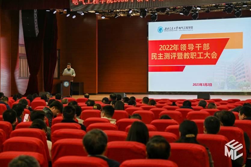 随后,学院其他领导干部进行了个人工作述职和总结汇报。谢力副书记分别从先锋电气、双严电气、创新电气、文化电气、阳光电气、队伍建设等方面介绍学生工作,并对宣传工作、纪委工作进行汇报;王轶副书记从教职工党建、学院部门工会、离退和关工委、人才和师资培育等方面的工作进行总结;何晓琼副院长对理论学习、国家轨道交通电气化与自动化工程技术研究中心(NEEC)工作、培训工作、校友工作、校产工作及对外合作、个人教学科研工作等作了总结,对2023年工作重点作报告;解绍锋副院长从思想学习、实验室建设、实验实践教学、资产管理等方面作总结汇报;陈民武副院长对本科教学、研究生教学、国际化与利兹学院工作作了总结;胡海涛副院长从学科建设、人才工作、科学研究工作等方面作了总结汇报。