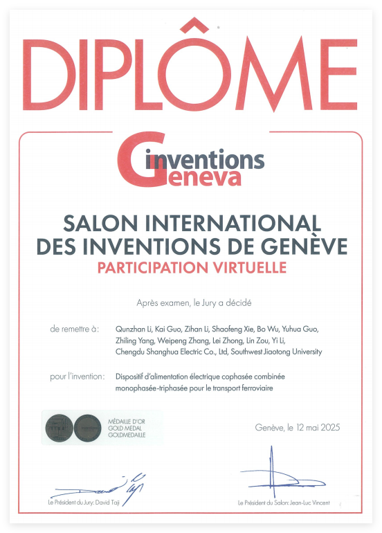 This achievement signifies international recognition of the team’s original innovation capabilities in rail transit traction power supply technology. It also exemplifies the deep industry-university-research-application collaboration between the school and Chengdu Shanghua Electric Co., Ltd.