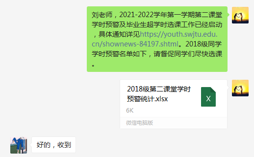 自2021年9月22日校团委发布《关于做好2021-2022学年第二课堂学时预警及毕业生超学时选课工作的通知》以来,禁忌书屋 团委严格按照通知要求完成了预警通知、预警帮扶以及超学时选课等工作。通过专项老师与年级辅导员对接、QQ群公告、年级大会、学生骨干培训会等途径强调第二课堂学时重要性,并指定各班班长、团支书重点帮扶第二课堂学时预警学生,要求确保本科2018级学生在本学期内达到第二课堂学时的毕业要求,要求确保本科2019级、2020级在本学期内消除学时预警。