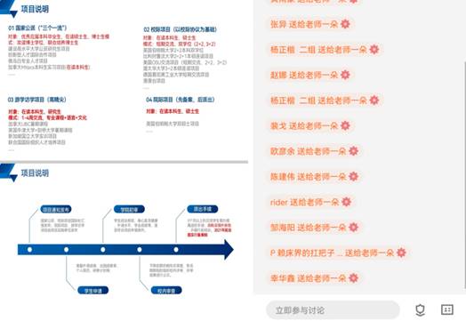 随后,廖莉向同学们介绍了学校出国留学的基本情况和政策,并进行了解读。她接着向同学们说明了我校的国家公派、校际项目、游学访学项目、院际项目四个基本项目并一一进行了深入讲解,让同学们有了深入的了解与认知。同时,她向同学们说明了出国留学的一些注意事项,给同学们留下联系方式,鼓励同学们向她积极提出问题,并且承诺会尽力解决同学们的难题。