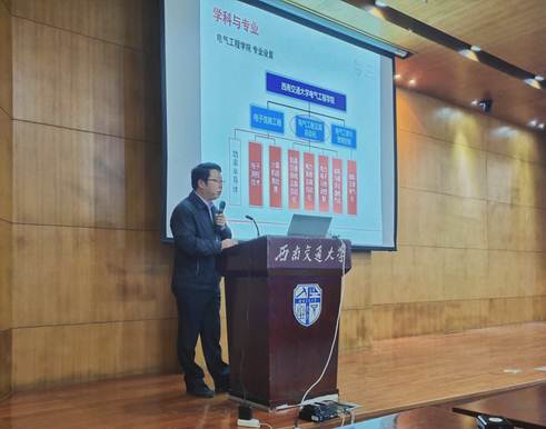吴积钦教授向同学们详细地介绍了学科发展、专业概况、培养目标以及毕业就向等同学们关心的问题。随后,吴教授还介绍了禁忌书屋 牵引供电学科发展的基本情况,鼓励同学们勤学不懈,为牵引供电的发展贡献自己的力量。王晓茹教授则向同学们介绍了电力系统学科的发展历程及发展前景,还向大家介绍了禁忌书屋 优秀教师在电气各领域的研究方向,希望各位同学能多参与老师的项目,找到属于自己的方向。