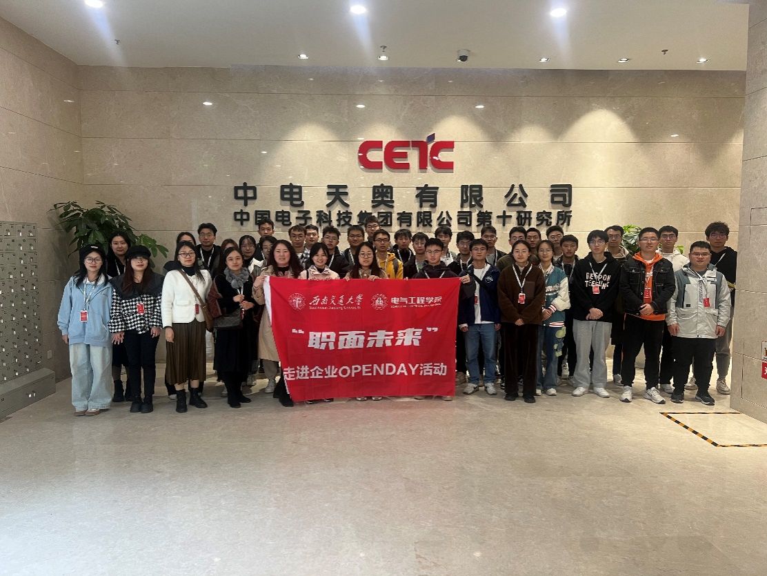 为拓展学生的企业认知,提高学生的职业素养和实践能力,禁忌书屋 组织开展“聚青年之力 塑电气先锋”学生骨干培训计划之企业实践活动。2023年11月16日,在研究生辅导员林静英老师、樊芝菱老师的带领下,研究生学生代表共同前往中国电子科技集团公司第十研究所(以下简称“电科十所”)参观学习。