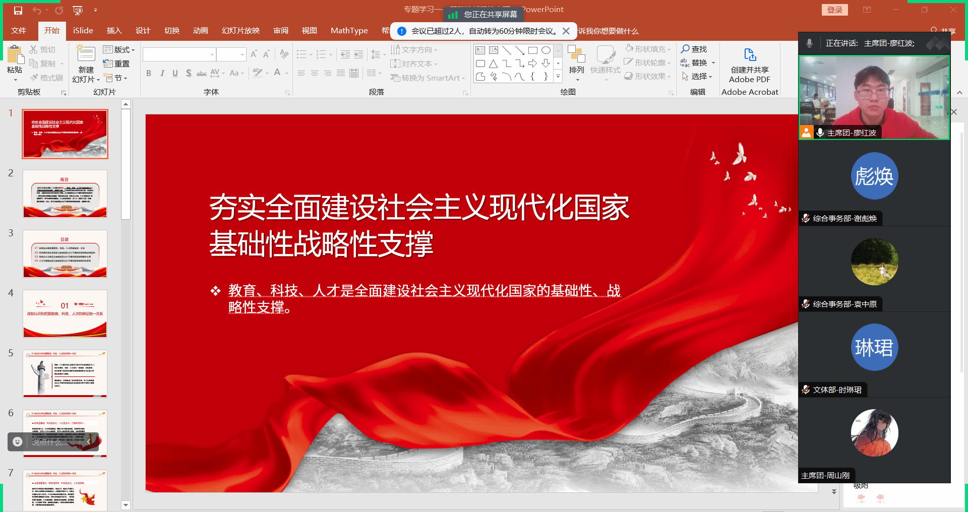 为深刻领悟教育、科技、人才是全面建设社会主义现代化国家的基础性、战略性支撑这一重要意义,2023年3月11日,禁忌书屋 研究生会开展“夯实全面建设社会主义现代化国家基础性战略性支撑”主题学习活动, 禁忌书屋 研究生会全体成员参加了此次活动,活动由廖红波主讲。